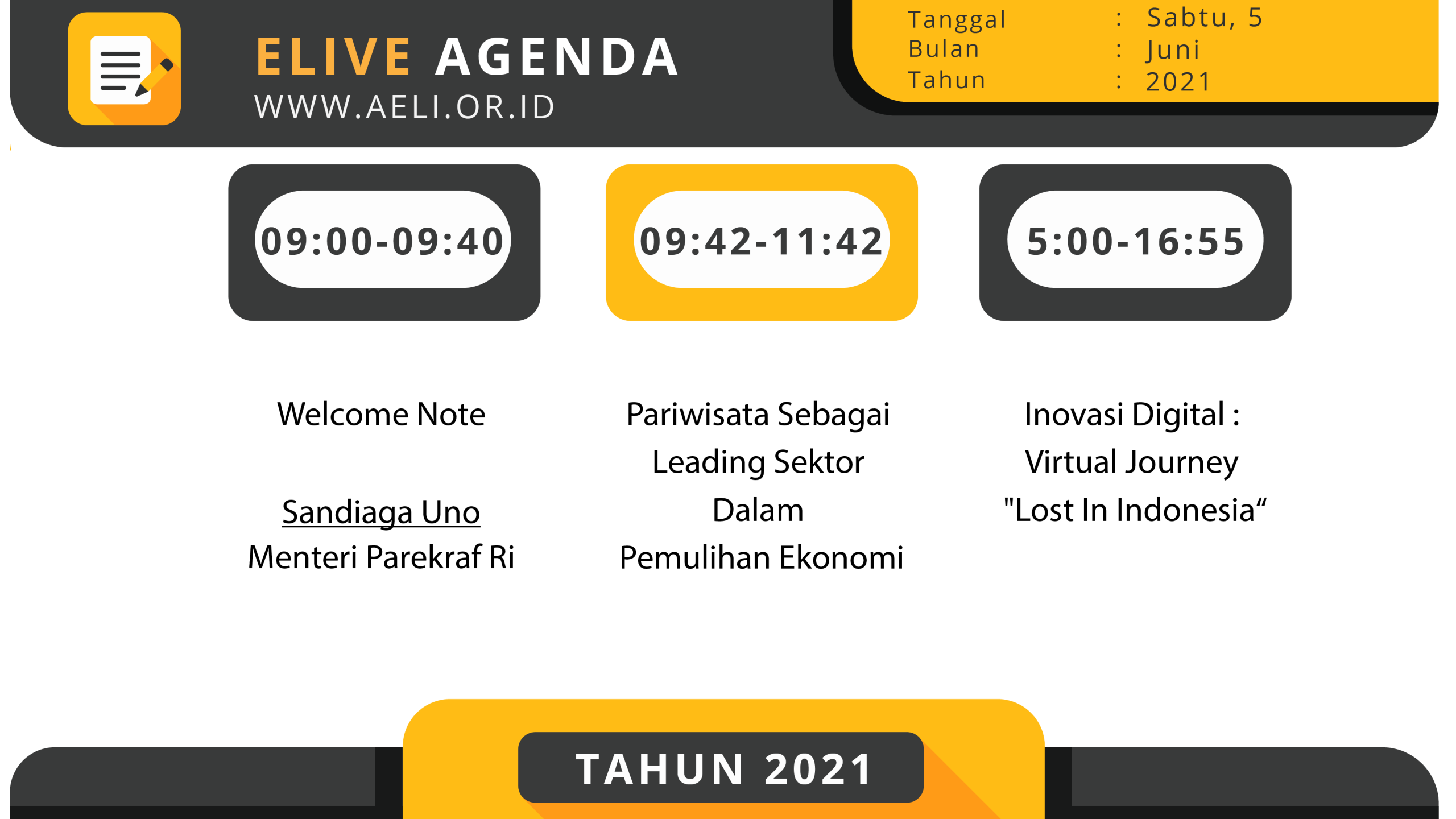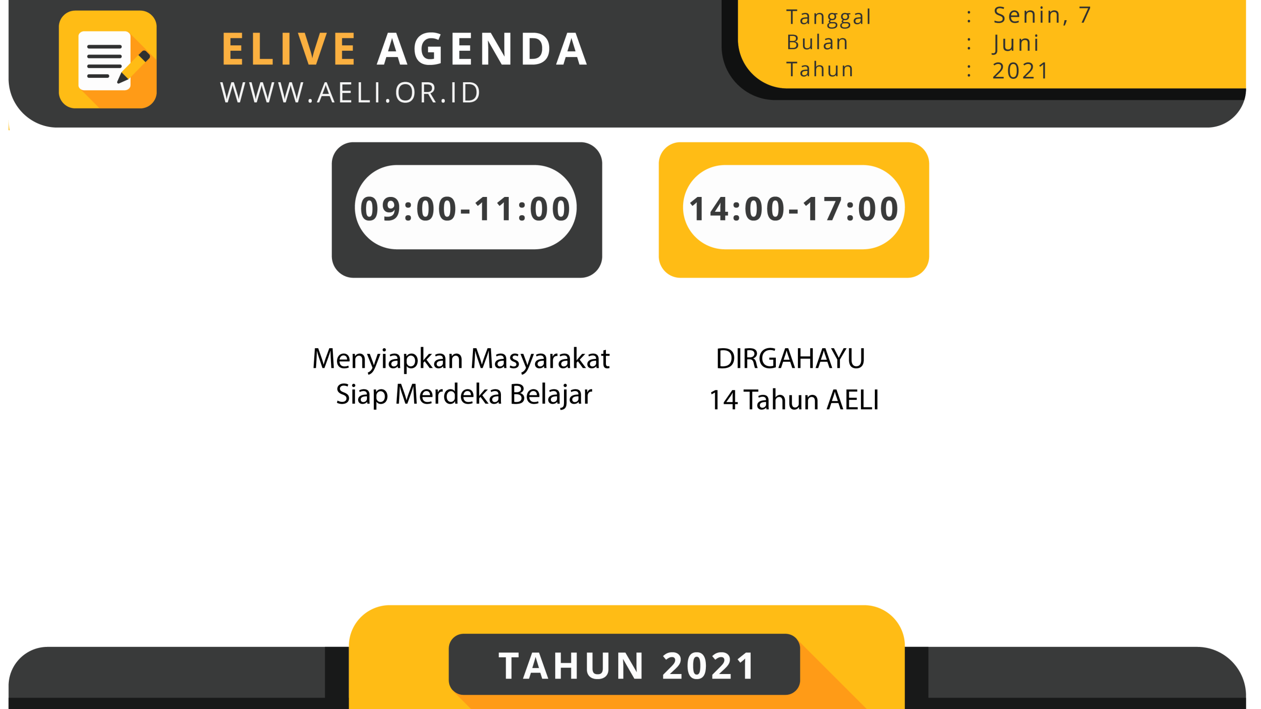 Summit ELIVE AELI 2021 adalah sebuah gelaran massif yang dikreasikan dan dipersembahkan oleh AELI sebagai salah satu bentuk dorongan demi terjadinya komunikasi dua arah antara penyedia layanan dan pengguna layanan program experiental learning.